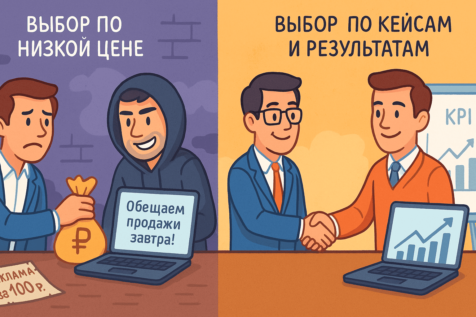 Соблазн велик: «Сделают за копейки — вдруг повезёт?» Это как брать водителя, который готов везти днём и ночью за минималку. Звучит выгодно, но спросите себя: на что он реально потратит время? На аналитику, гипотезы, правки посадочных? Или просто «зальёт» трафик и будет ждать?
