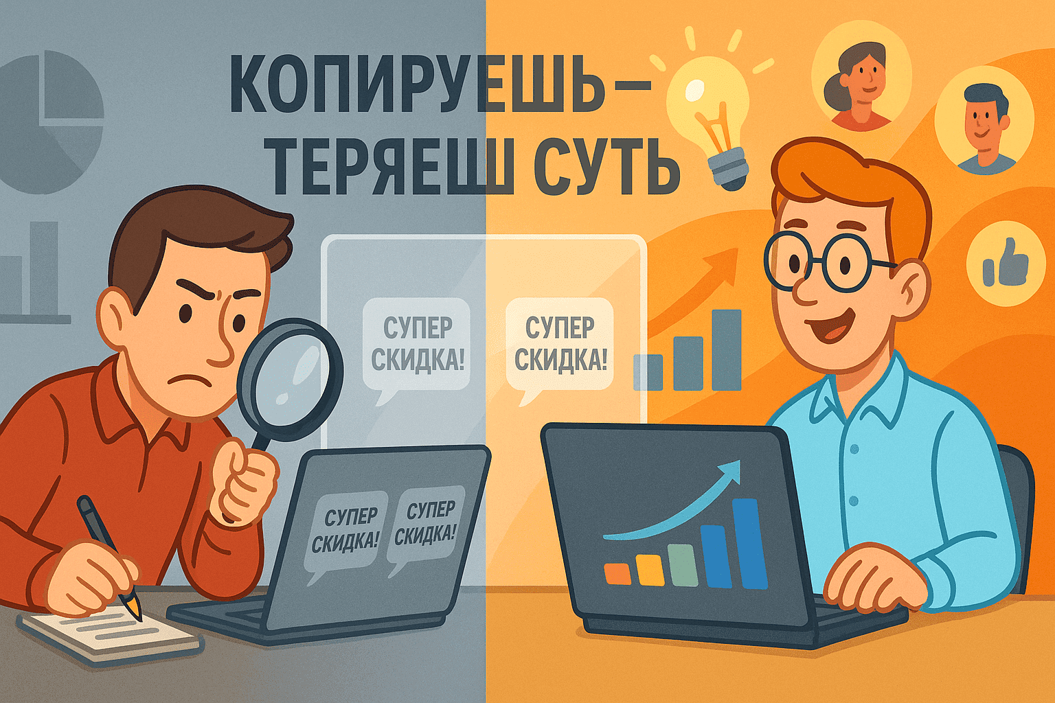 Многие предприниматели, особенно в начале пути, думают: “У конкурента реклама работает — просто скопирую, сделаю то же самое, и у меня тоже будет результат.”