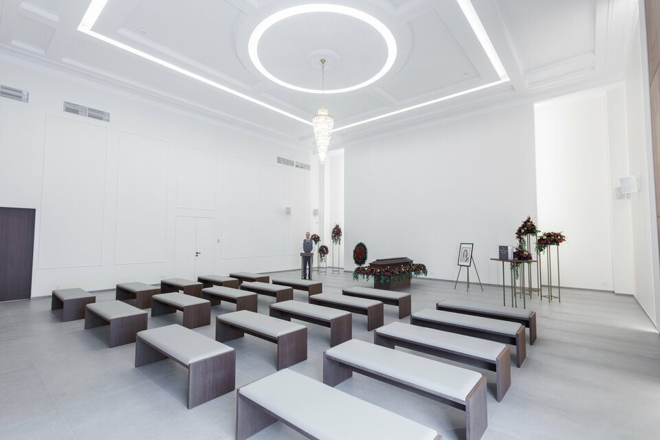 - «Зал прощаний / венки / гробы / копка могилы / услуги священнослужителя».