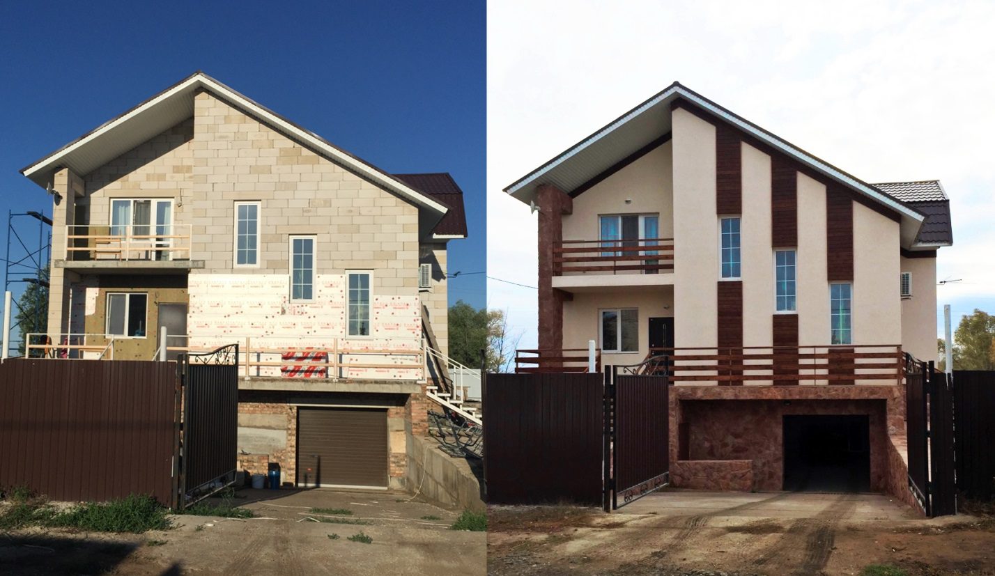 Ниша: комплексное обновление фасада под ключ — покраска, штукатурка/декор, облицовочные панели и сайдинг, частичный ремонт, подготовка основания, откосы/водоотливы.